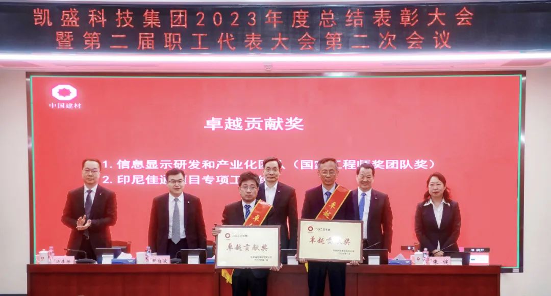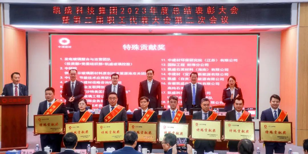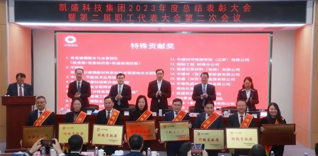 會(huì )上,凱盛科技集團黨委副書(shū)記陶立綱宣讀了2023年度表彰名單,并主持頒獎。凱盛科技集團副總經(jīng)理王叢笑宣讀了2023年度科技類(lèi)獲獎情況。會(huì )議表彰了凱盛科技集團2023年度卓越貢獻獎、特殊貢獻獎、先進(jìn)單位、先進(jìn)集體、勞動(dòng)模范、先進(jìn)工作者。